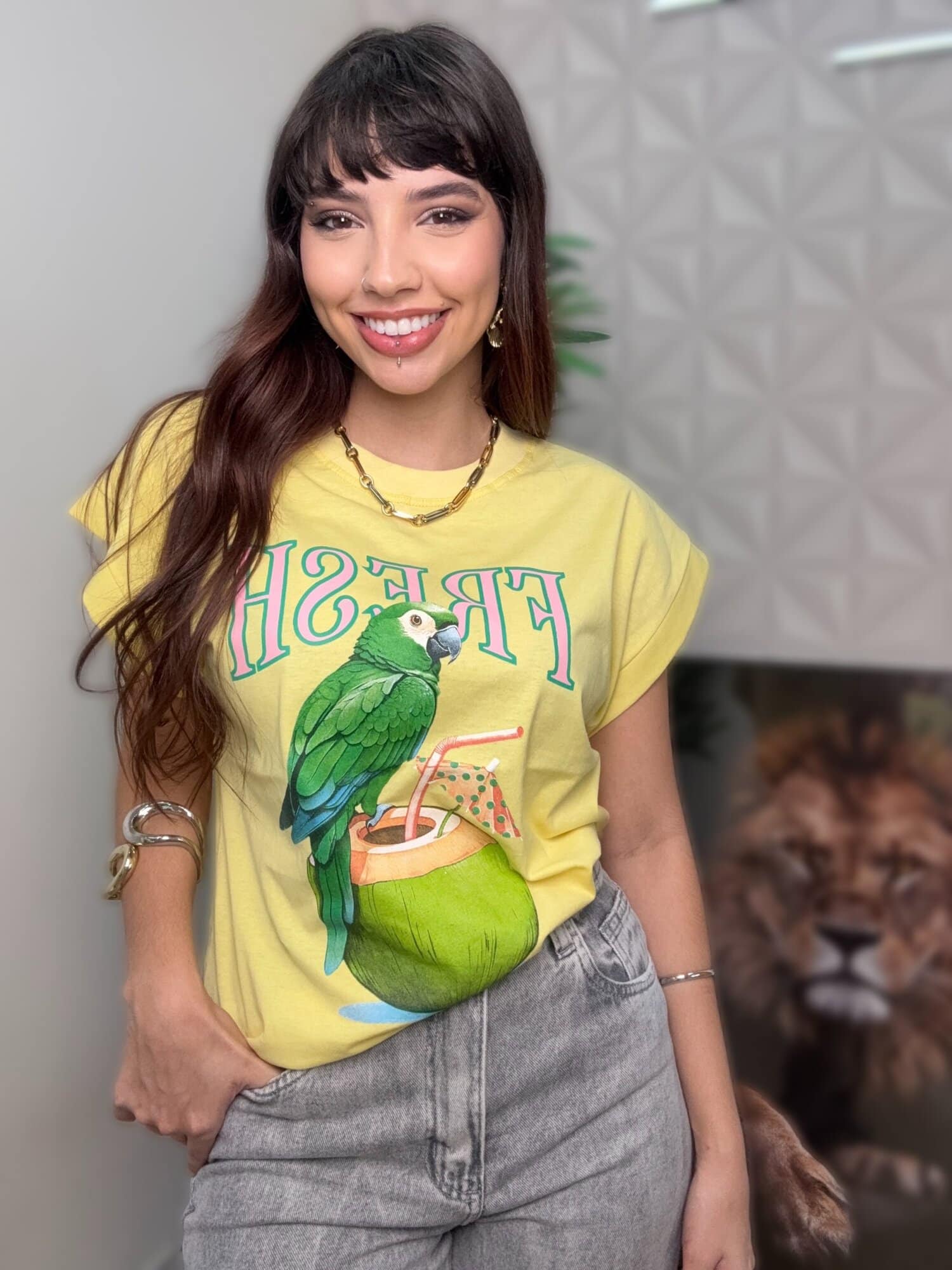 - Modelo com estampa na frente;